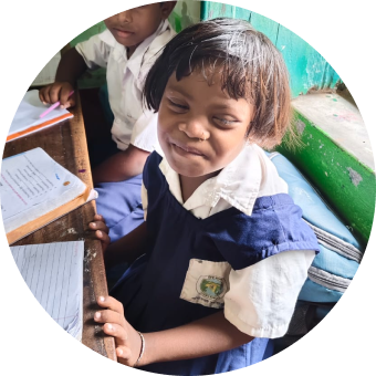 Eight-year-old Soumi Soren, a girl with Down syndrome from a tribal community where neither disability nor education is often prioritized, has shown remarkable progress. Through GBCD’s School Readiness Programme, she received training in Activities of Daily Living (ADL), toilet use, and pre-writing and pre-reading skills. Today, she is in Class III at Satidaha Primary School, attending regularly, completing small tasks assigned by teachers, and displaying improved social behavior. Academically, she understands basic number concepts, can imitate writing, and state her name and address. GBCD also organized school programme to ensure peer support, enabling Soumi to enjoy a friendly, inclusive environment both inside and outside school.